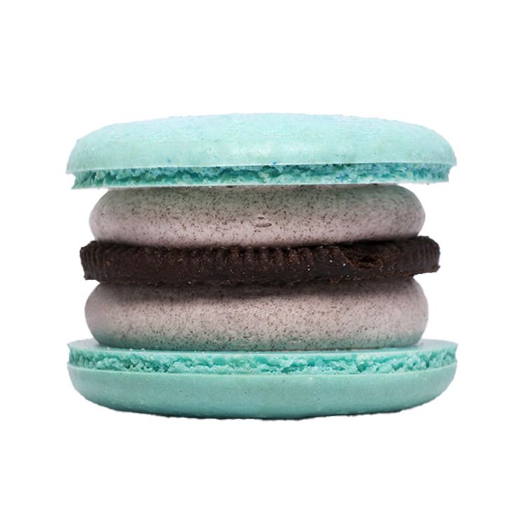 쿠키 앤 크림 필링 사이 쿠키가 들어가 달콤한 맛과 바삭한 식감이 특징인 아이들이 좋아하는 마카롱